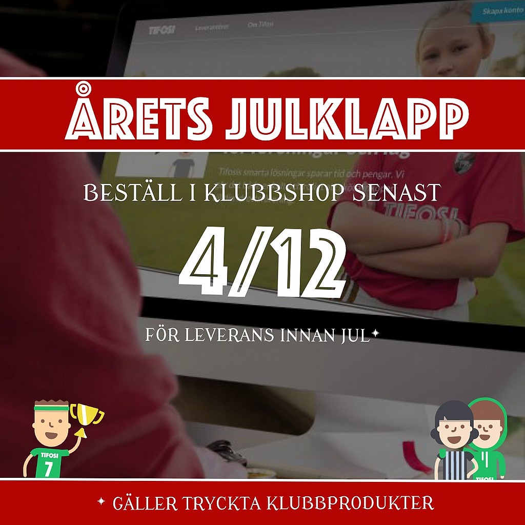 Funderar ni på julklappar? Vår klubbshop är fylld med bra julklappar till alla i familjen men ni måste vara snabba. Sista datum för beställningar till jul är 4:e december!
